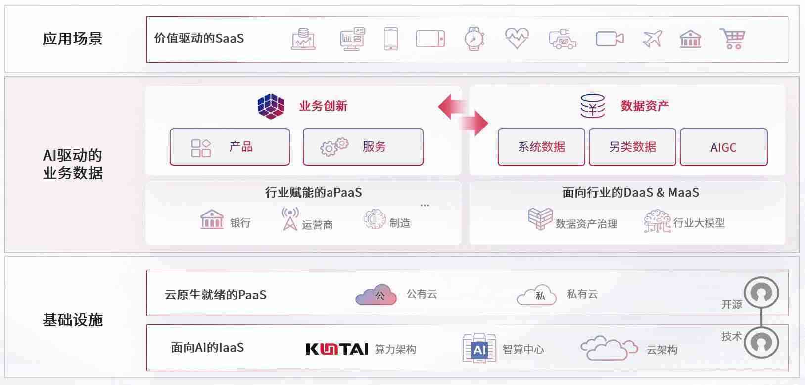 数字时代,,,,围绕企业数字化转型的关键要素,,,,ABPAY钱包数码开创性的提出数云融合战略和技术体系框架,,,着力在云原生、、、数字原生、、、、AI原生和信创产业上架构产品和服务能力,,,为处在不同数字化转型阶段的快消零售、、、汽车、、、、金融、、、、医疗、、、、政企、、、、教育、、、、运营商等行业客户提供泛在的敏捷IT能力和融合的数据驱动能力,,构建跨界融合创新的数字业务场景和新业务模式,,,,助力企业级客户建立面向未来的核心能力和竞争优势,,全面推动社会的数字化、、、智能化转型升级。。